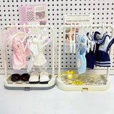 Keep your Labubu wardrobe tidy and adorable with the 19cm Clothing Hanger & Shoes Rack — a must-have accessory for collectors who love dressing up their figures. Designed to fit Labubu outfits and shoes perfectly, this miniature display rack brings order and style to your setup. The dual-level design offers a hanging space for clothes and a bottom shelf for shoes or accessories, making it ideal for organizing multiple looks in one compact space. Whether you're preparing your Labubu for a photo shoot or simply showcasing your growing collection, this clothing rack adds a functional and stylish touch to any display corner.